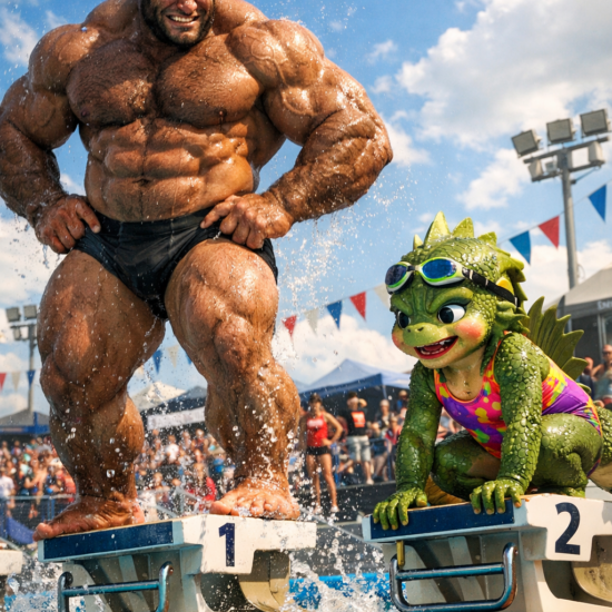 Coco sieht den großen Schwimm-Wettkampf als vergnügliches Plansch-Event – ich dagegen als den Kampf um Ruhm und Ehre....